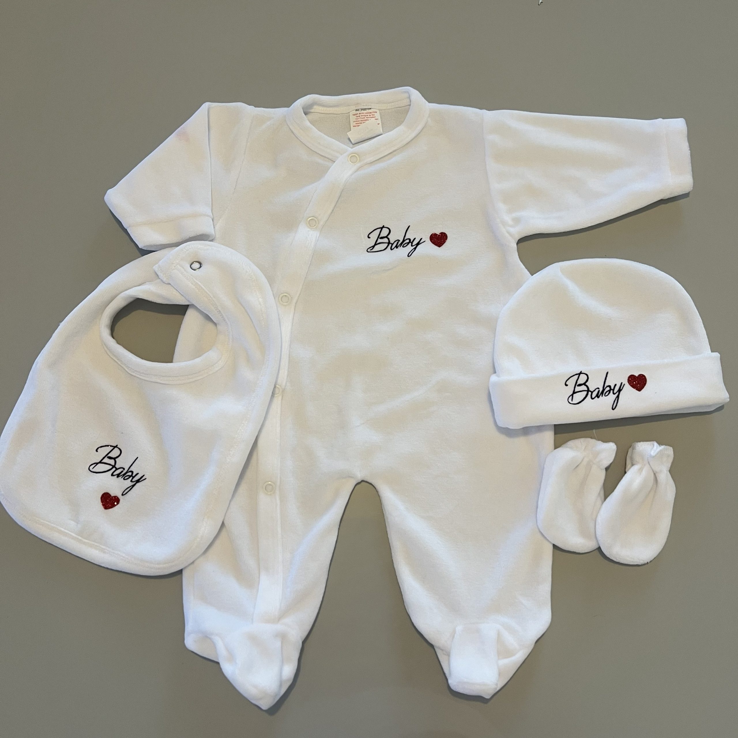 Si vous souhaitez l’inscription “Baby”, merci de l’indiquer dans l’option de personnalisation. Sinon, d’indiquer le prénom, il sera inscrit accompagné du cœur rouge. ❤️